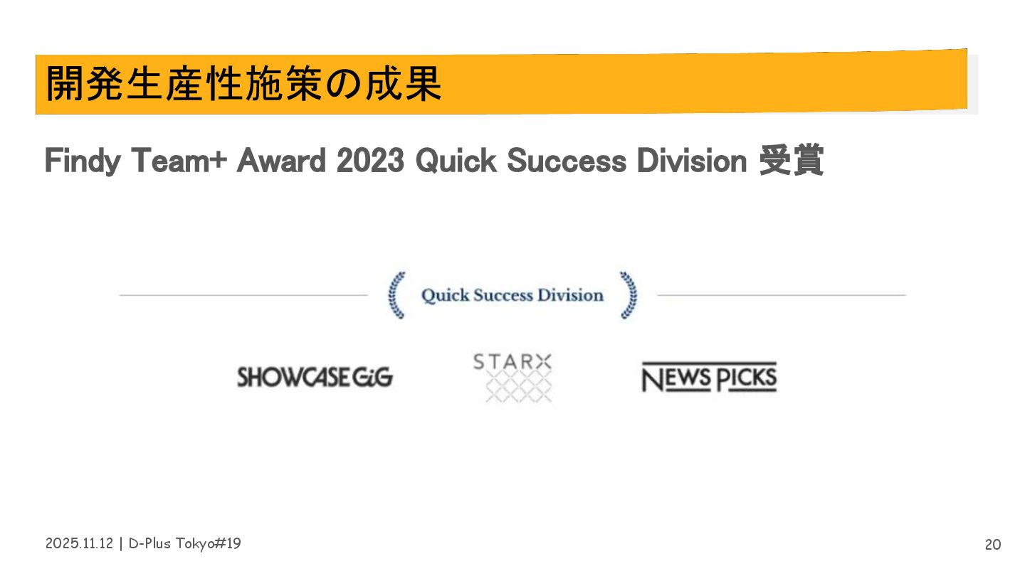 2025.11.12 | D-Plus Tokyo#19 開発生産性施策の成果 Findy Team+ Award 2023 Quick