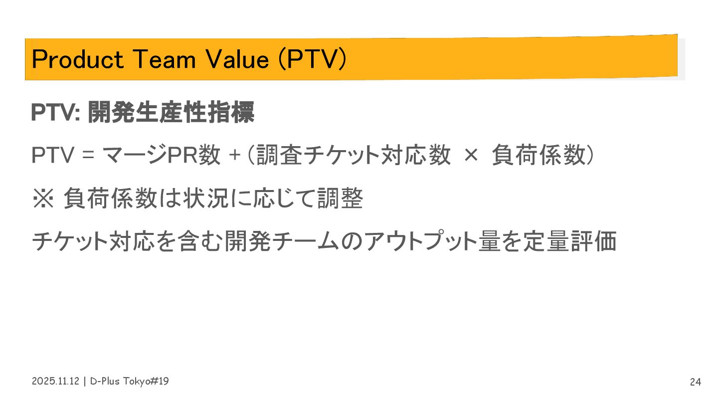 2025.11.12 | D-Plus Tokyo#19 Product Team Value (PTV) PTV: 開発生産性指標
