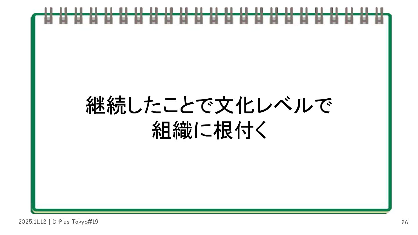 2025.11.12 | D-Plus Tokyo#19 継続したことで文化レベルで 組織に根付く 26