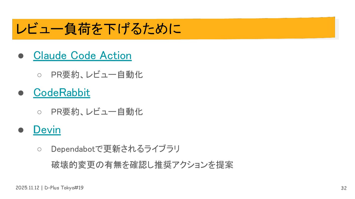 2025.11.12 | D-Plus Tokyo#19 レビュー負荷を下げるために • Claude Code Action ◦