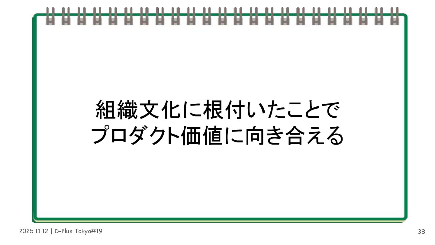 2025.11.12 | D-Plus Tokyo#19 組織文化に根付いたことで プロダクト価値に向き合える 38
