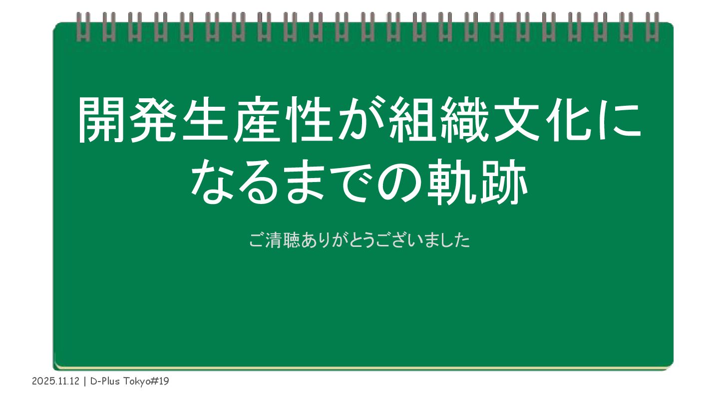 2025.11.12 | D-Plus Tokyo#19 開発生産性が組織文化に なるまでの軌跡 ご清聴ありがとうございました