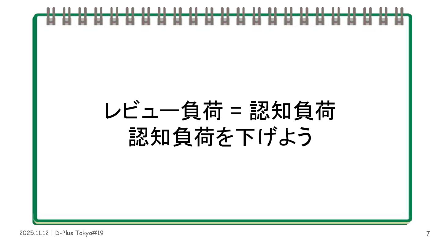 2025.11.12 | D-Plus Tokyo#19 レビュー負荷 = 認知負荷 認知負荷を下げよう 7