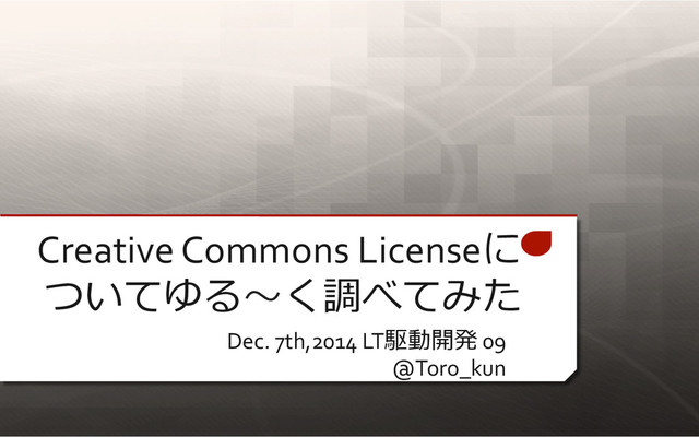Creative Commons Licenseに ついてゆる〜~く調べてみた Dec. 7th,2014 LT駆動開発 09 @Toro_kun