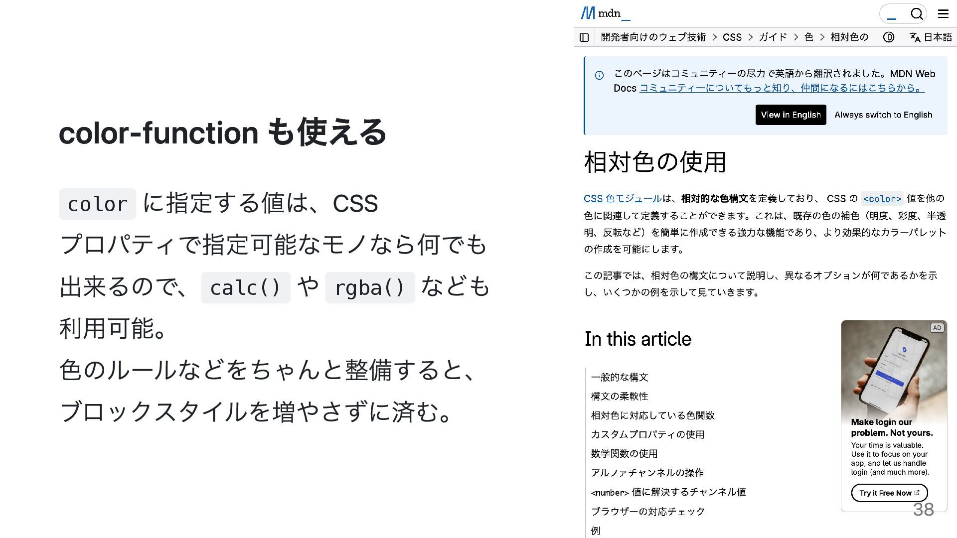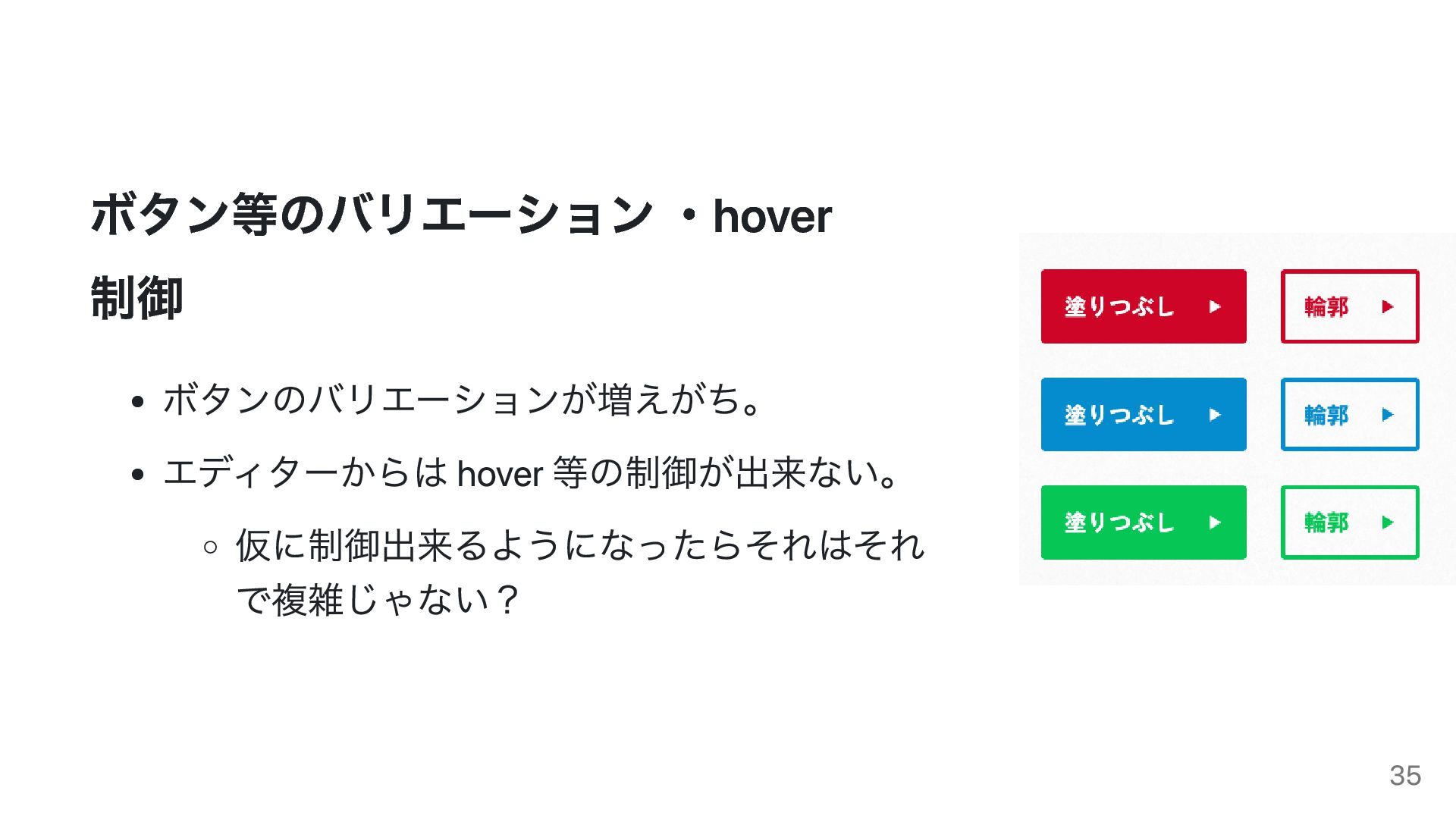 利用可能。 色のルールなどをちゃんと整備すると、 ブロックスタイルを増やさずに済む。 38