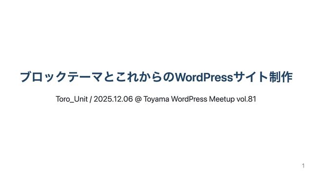 ブロックテーマとこれからのWordPressサイト制作 Toro_Unit / 2025.12.06 @ Toyama WordPress Meetup vol.81 1
