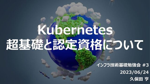 Kubernetes 超基礎と認定資格について インフラ技術基礎勉強会 #3 2023/06/24 久保田 亨