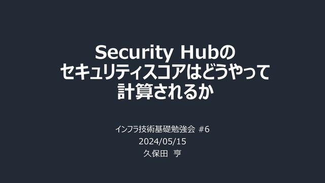 Security Hubの セキュリティスコアはどうやって 計算されるか インフラ技術基礎勉強会 #6 2024/05/15 久保田 亨