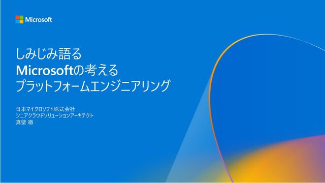 the problem space | Microsoft Learn プロダクトマインドセットを持った、プラットフォームエンジニアリングチームを 立ち上げる 開発者が特に苦労している「トイル」を特定し、自動化するこ とで実績と自信、信頼関係を得る 開発者が使っている/使いたいツールやプラットフォームの情報を 集約し、見つけやすくする ツールやプラットフォームをテンプレートとして提供する セルフサービスプラットフォームの 確立 組織の標準に準拠した、ガードレール付きの 環境を提供する 進め方の例