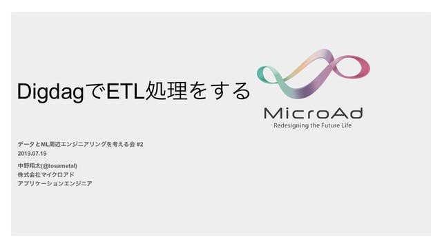 DigdagͰETLॲཧΛ͢Δ σʔλͱMLपลΤϯδχΞϦϯάΛߟ͑Δձ #2 2019.07.19 தᠳଠ(@tosametal) גࣜձࣾϚΠΫϩΞυ ΞϓϦέʔγϣϯΤϯδχΞ