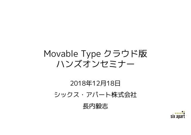 2018年12月18日に開催された、 Movable Type クラウド版のハンズオン資料です。