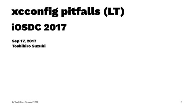 xcconfig pitfalls (LT) iOSDC 2017 Sep 17, 2017 Toshihiro Suzuki