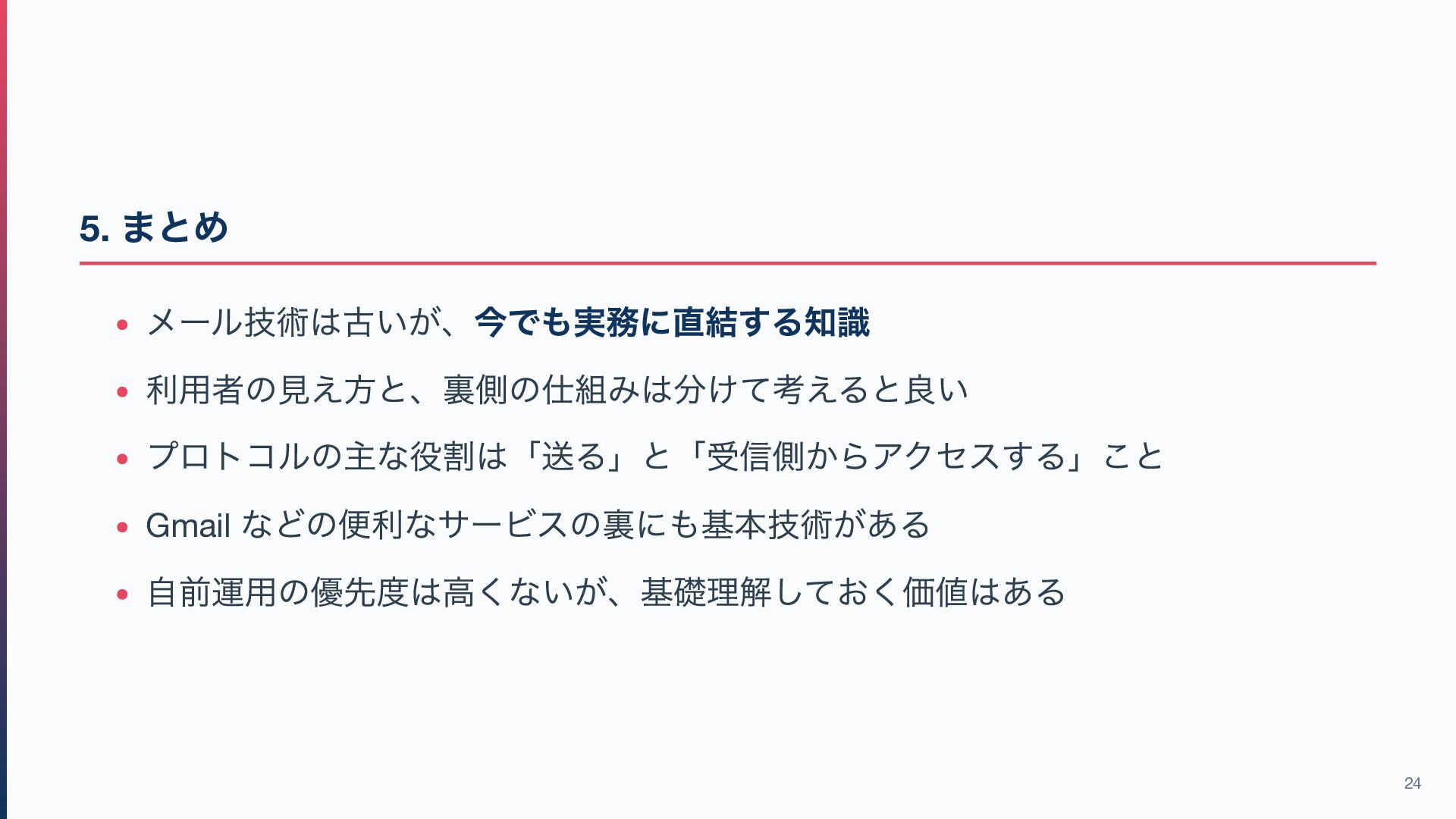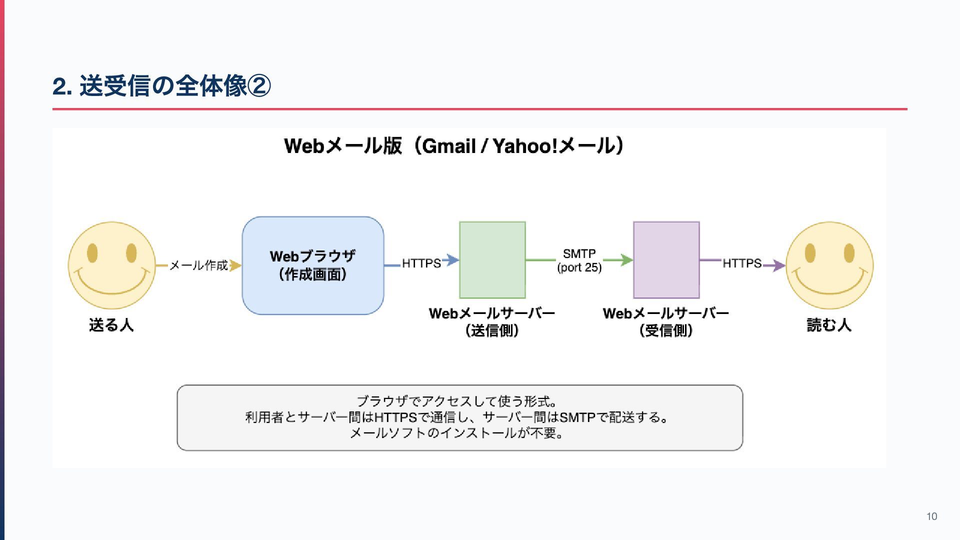 5. 2. Web (HTTP )と何が違うのか?② 観点 Web メール プロトコル数 1 つ(HTTP