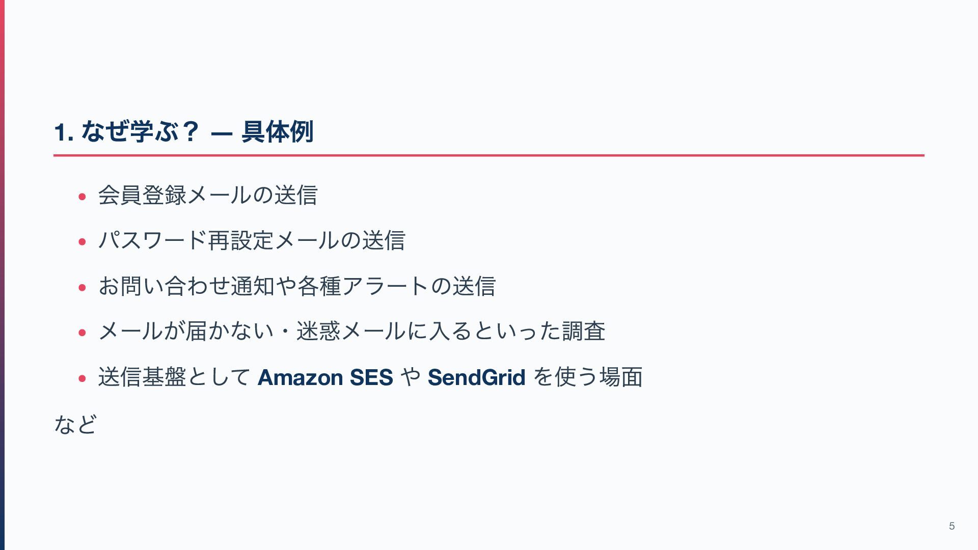 開発の実務ではメールに関する問題が普通に起こる → 仕組みを知っていると、設計・実装・障害調査がしやすくなる 4