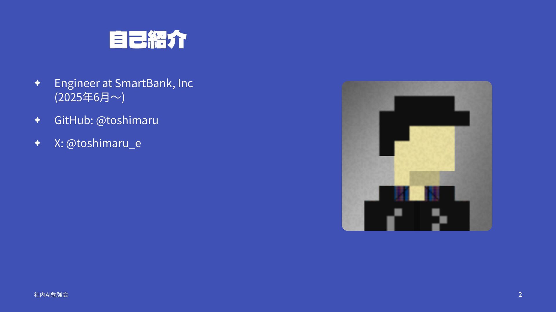 ✦ X: @toshimaru_e 社内AI勉強会 !