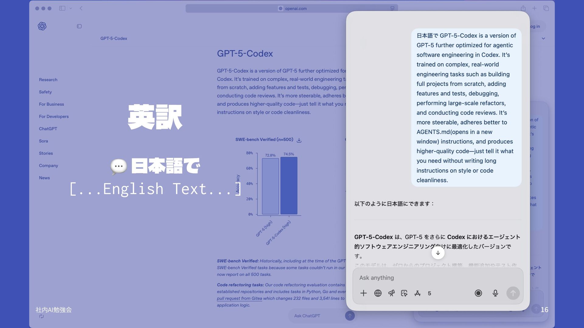 英訳 ! 日本語で [...English Text...] 社内AI勉強会 !"