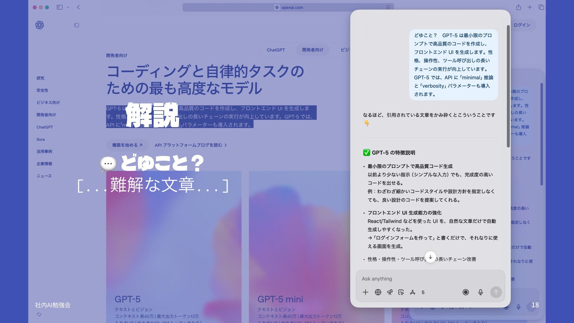 さらに深掘りたい場合は、ChatGPT Appに戻り対話を再開できる 社内AI勉強会 !"