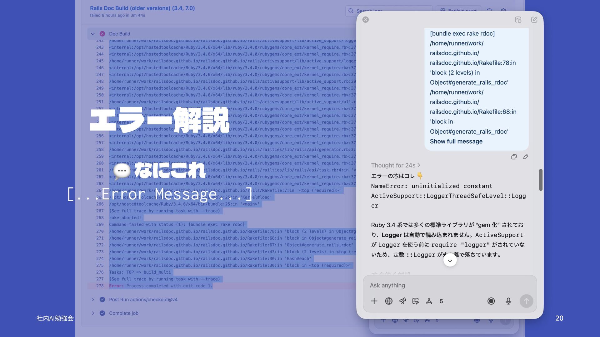 エラー解説 ! なにこれ [...Error Message...] 社内AI勉強会 !"