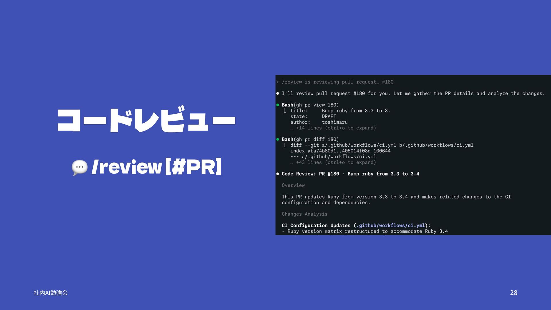 コードレビュー ! /review [#PR] 社内AI勉強会 !"