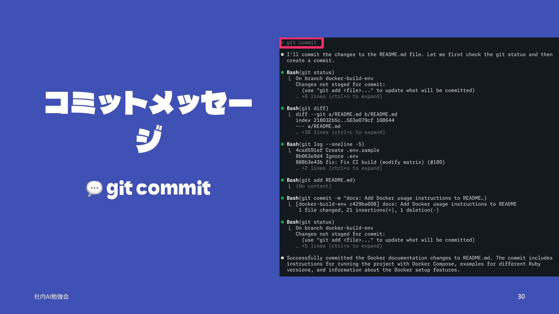 コミットメッセー ジ ! git commit 社内AI勉強会 !"