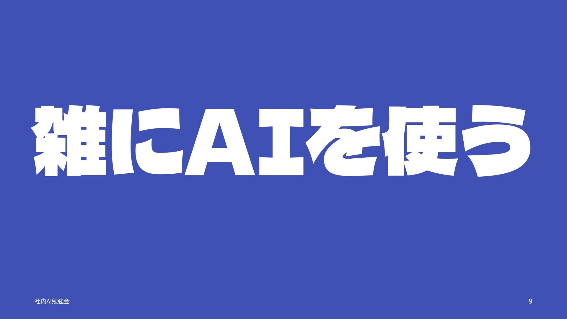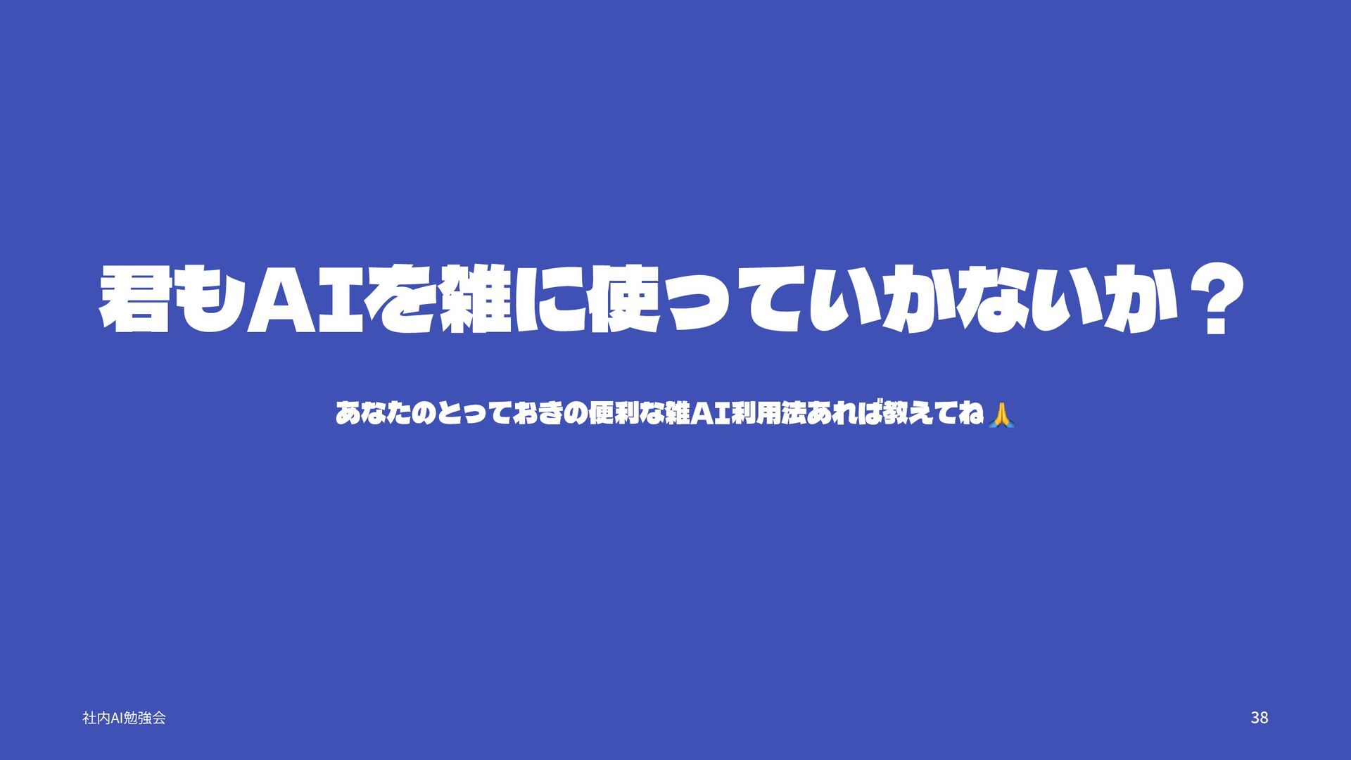 君もAIを雑に使っていかないか? あなたのとっておきの便利な雑AI利用法あれば教えてね 社内AI勉強会 !"