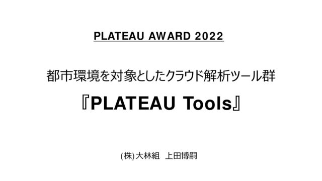 都市環境を対象としたクラウド解析ツール群 『PLATEAU Tools』 (株)⼤林組 上⽥博嗣 PLATEAU AWARD 2022