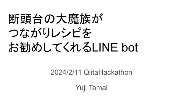 断頭台の大魔族が つながりレシピを お勧めしてくれるLINE bot 2024/2/11 QiitaHackathon Yuji Tamai