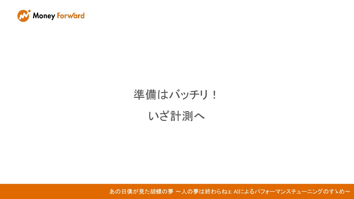 準備はバッチリ! いざ計測へ あの日僕が見た胡蝶の夢 〜人の夢は終わらねェ AIによるパフォーマンスチューニングのすゝめ〜