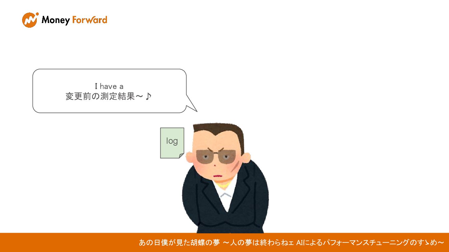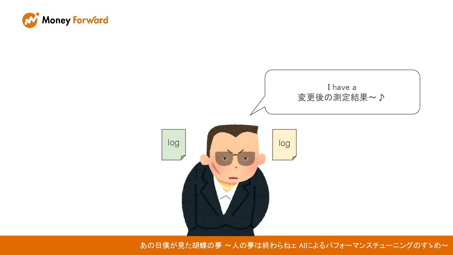 I have a 変更後の測定結果〜♪ あの日僕が見た胡蝶の夢 〜人の夢は終わらねェ AIによるパフォーマンスチューニングのすゝめ〜 log log