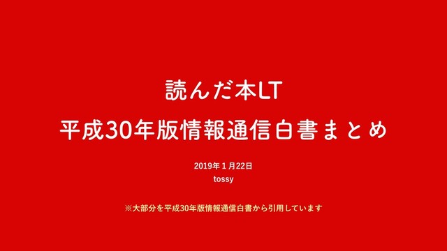 読んだ本LT 平成30年版情報通信白書まとめ 2019年1月22日 tossy ※大部分を平成30年版情報通信白書から引用しています