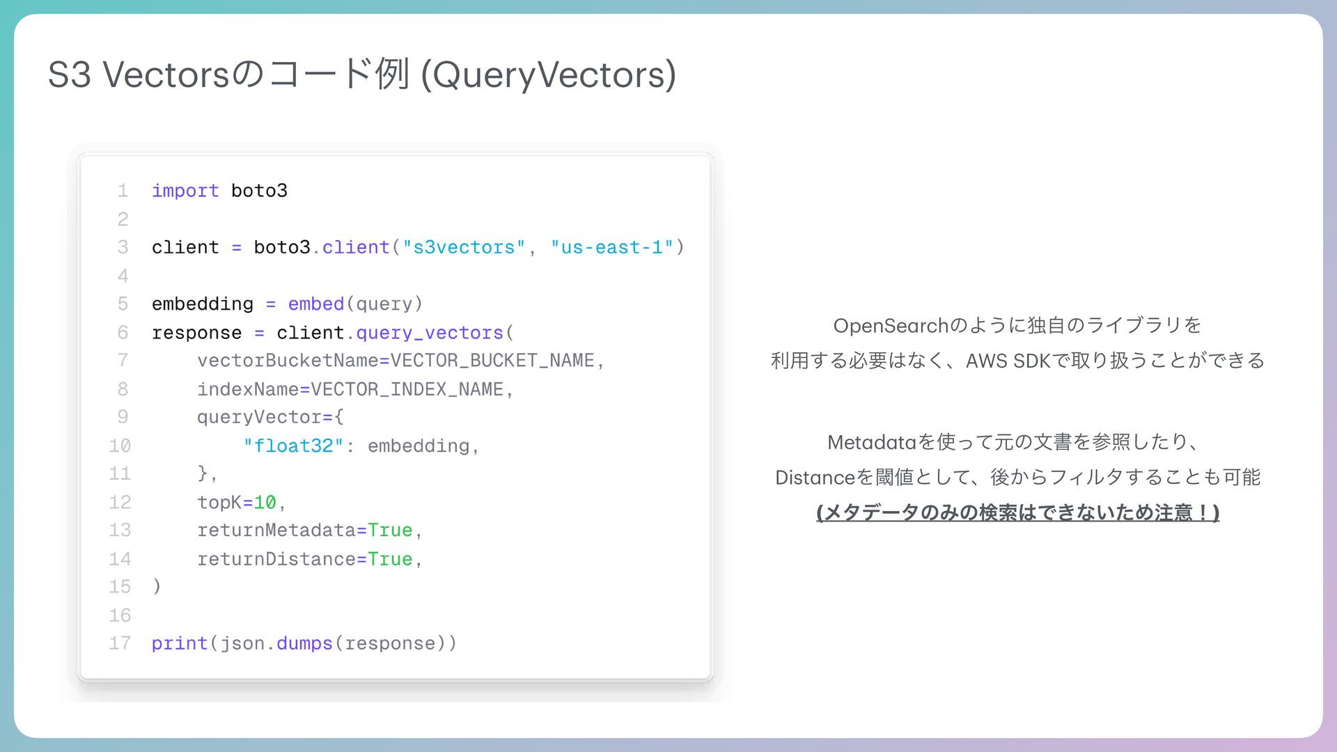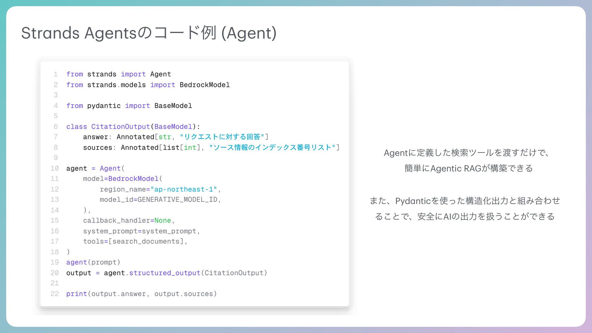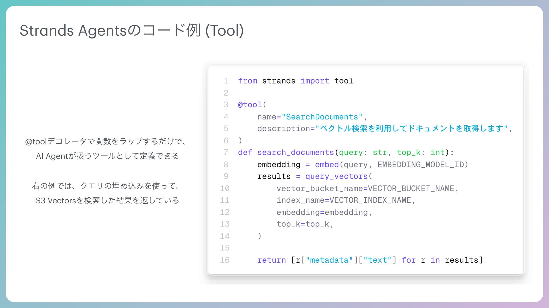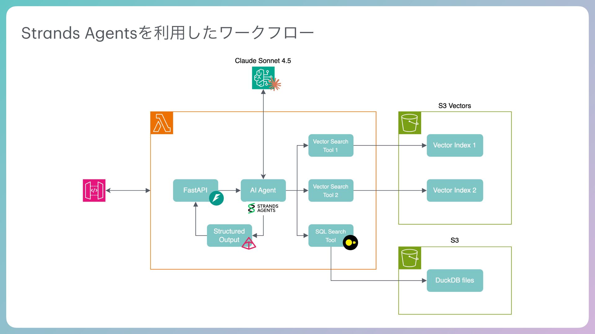 Tool Agentic Se a rch Tool SQL Se a rch Request Tool use Tool Result VectorDB Multi-Model DB Prompt Output End turn AI Agent͕ࣗతʹݕࡧͷઓུΛཱͯɺπʔϧͷ࣮ߦ݁Ռʹج͍ͮͨαΠΫϧΛճ͢