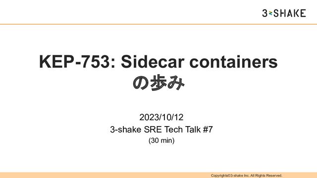 • Sidecar を 2 つ作成 • Sidecar に Probe を設定 ◦ Startup probe ◦ Readiness probe apiVersion: v1 kind: Pod metadata: name: pod-with-sidecar spec: initContainers: - name: sidecar-1 image: cgr.dev/chainguard/wolfi-base:latest restartPolicy: Always command: ["ash", "-c", "trap 'echo Terminated; exit' TERM; echo Started; while true; do sleep 1; done"] startupProbe: exec: command: ["ash", "-c", "echo StartupProbe Started > /proc/1/fd/1; sleep 5; echo Ready > /proc/1/fd/1"] initialDelaySeconds: 5 timeoutSeconds: 8 periodSeconds: 10 - name: sidecar-2 image: cgr.dev/chainguard/wolfi-base:latest restartPolicy: Always command: ["ash", "-c", "trap 'echo Terminated; exit' TERM; echo Started; while true; do sleep 1; done"] readinessProbe: exec: command: ["ash", "-c", "echo ReadinessProbe Started > /proc/1/fd/1; sleep 5; echo Ready > /proc/1/fd/1"] initialDelaySeconds: 5 timeoutSeconds: 8 periodSeconds: 10 containers: - name: regular-1 image: cgr.dev/chainguard/wolfi-base:latest command: ["ash", "-c", "trap 'echo Terminated; exit' TERM; echo Started; while true; do sleep 1; done"] ※ Kubernetes 1.28 時点の実装