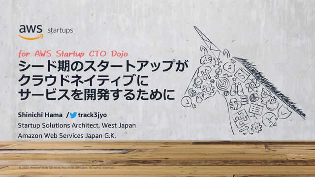 AI/ML (API) カスタマーサポート バックオフィス スケーラビリティ、安定性、可⽤性 ログ分析 AI/ML (Custom) セキュリティ コンプライアンス カスタマーエンゲージメント ※ 詳細な要素、タイミングは ケースバイケースで異なります AWS Amplify, Amazon Lightsail, Serverless Services, AWS Fargate etc AWS Amplify, AWS Activate, AWS Savings Plan, Spot Instances etc Amazon Forecast etc Amazon SageMaker Amazon Pinpoint, Amazon Personalize etc Amazon Connect, Amazon Lex etc AWS Amplify, Serverless Services, Auto Scaling etc Amazon S3, AWS Glue, Amazon Athena etc Amazon WorkSpaces, AWS SSO etc AWS IAM, Amazon GuardDuty etc AWS CloudTrail etc