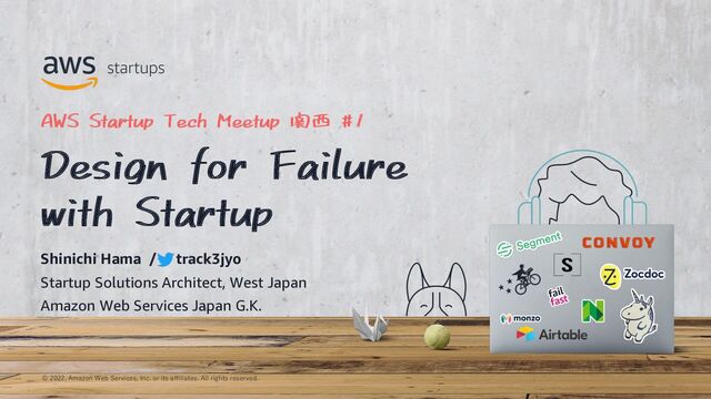 rights reserved. Shinichi Hama / track3jyo Startup Solutions Architect, West Japan Amazon Web Services Japan G.K. Design for Failure with Startup AWS Startup Tech Meetup 関西 #1