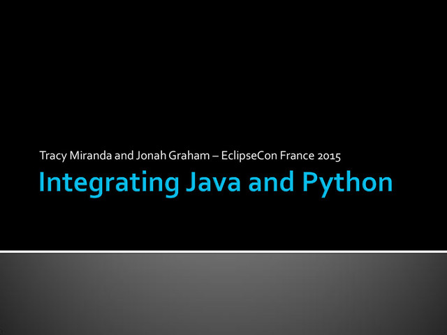well Loved by academics and researchers Loved by tool developers and enterprise Numpy, scipy, matplotlib, IPython notebook Eclipse RCP, SWT, EMF