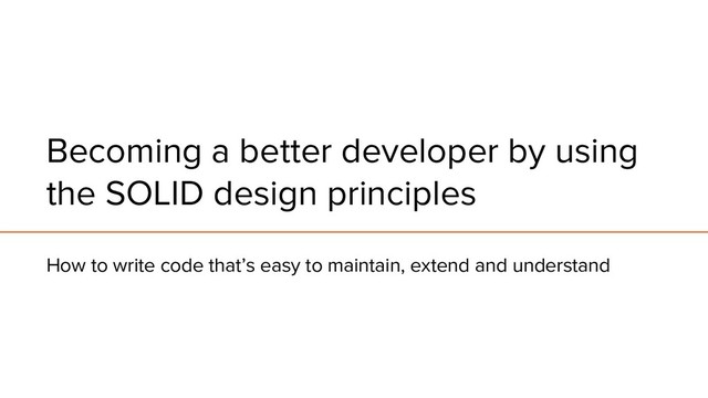 The focus of this presentation is on what distinguishes a good PHP developer from a strong one and how to stand out from the crowd. It explains how to incorporate the SOLID principles in your daily work and design your code for extendibility. You'd learn how to write code in a way that will make it easy to go back to a feature you developed a year ago and extend it with additional functionality in minutes, not hours.