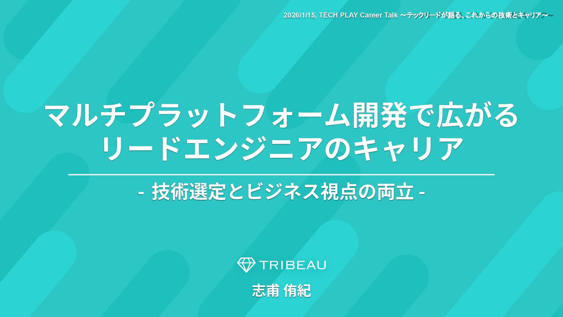 マルチプラットフォーム開発で広がる リードエンジニアのキャリア 志甫 侑紀 - 技術選定とビジネス視点の両⽴ - 2026/1/15, TECH PLAY