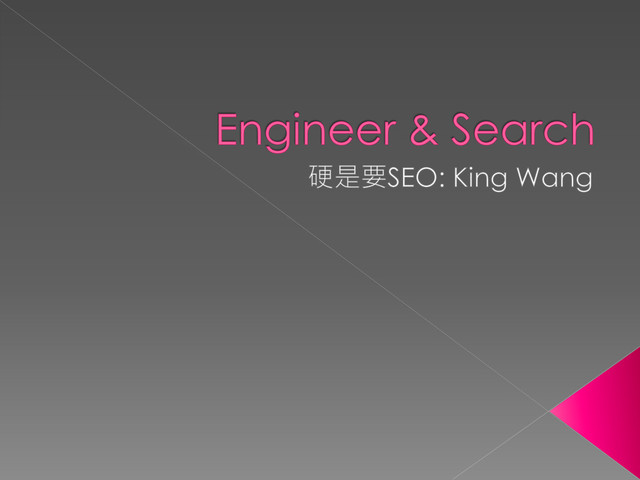 誰說工程師不會做行銷,SEO是一套用邏輯串起 的行銷策略 利用系統可以更精準的找出SEO執行的進入策略 研究數據的熱誠