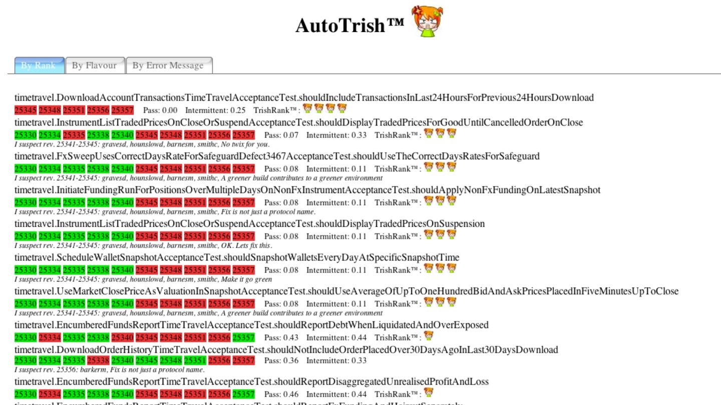 In this talk, Trisha will identify issues that slow down developers when writing, running and debugging tests, and look at tools that can help developers with each of these problems. There will be live coding, analysis of social media poll results, an overview of solutions in this space, "best practice" recommendations, and machine learning will be mentioned at some point.