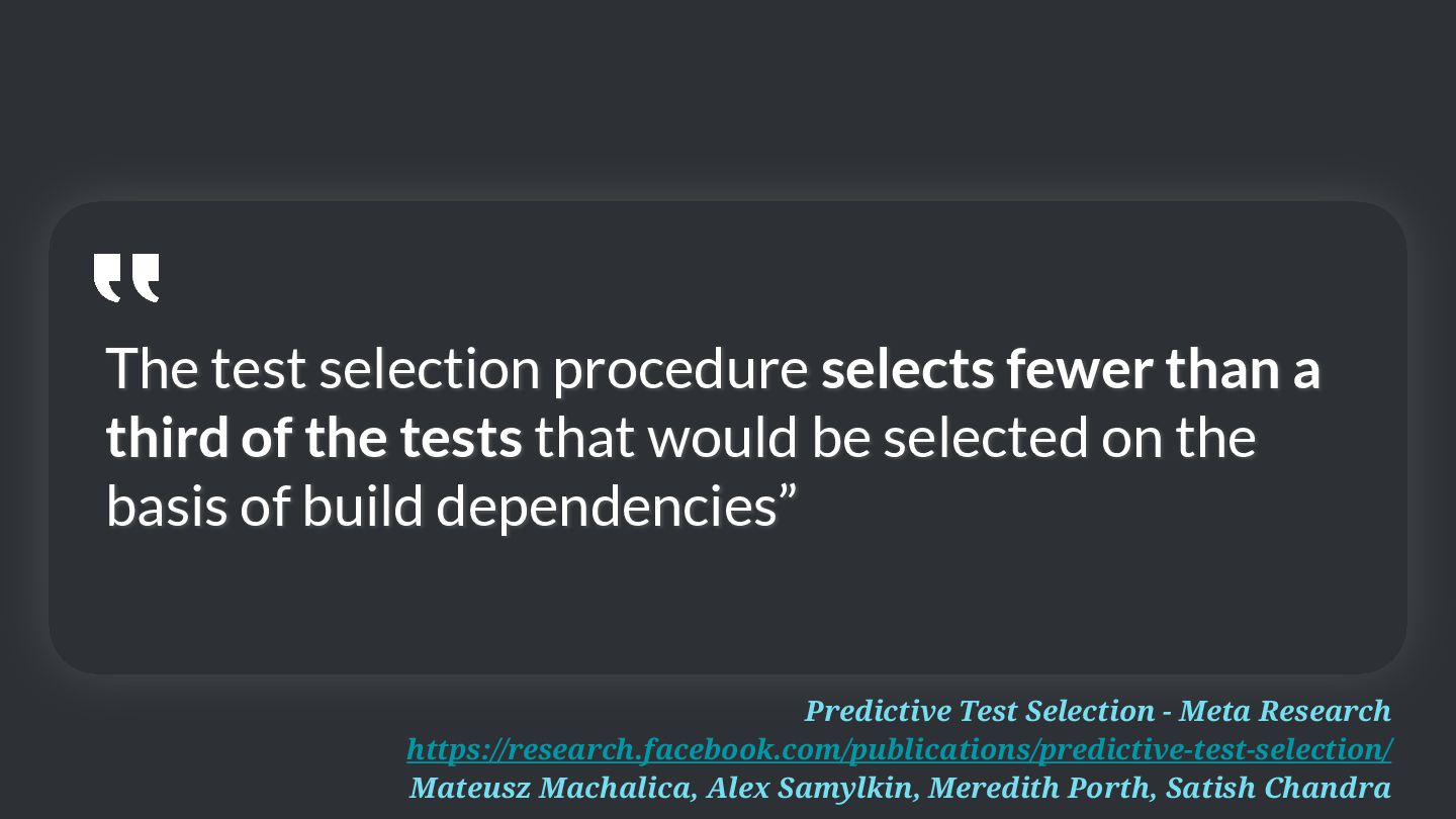 More code means more tests. More coverage means more tests. More tests mean more time. Time that you want to spend being productive, creative, innovative. How can you balance the need for quality with the need for speed?