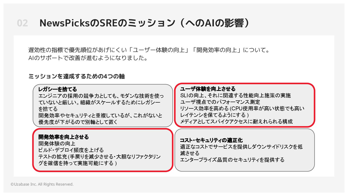 NewsPicksのSREのミッション(へのAIの影響) ©Uzabase Inc. All Rights Reserved.