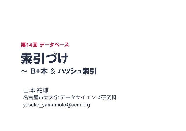 1. 関係データの物理的な格納方式 2. 索引 3. B+木 4. ハッシュ索引 5. 索引づけのためのSQL