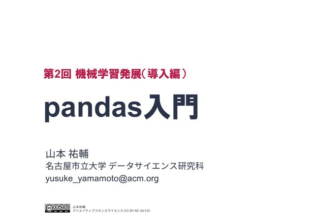 pandas入門 ⼭本 祐輔 名古屋市⽴⼤学 データサイエンス研究科