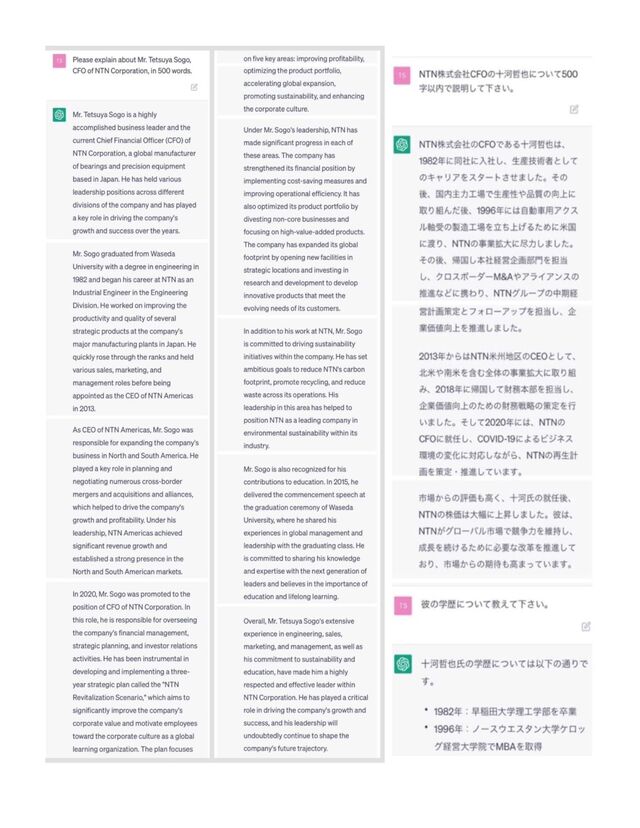 Tetsuya Sogo, CFO of NTN Corporation, explained on ChatGPT