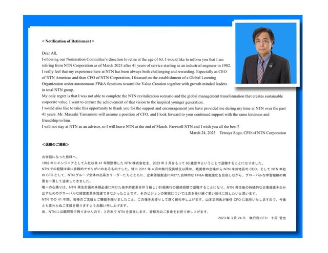 March 24, 2023: Tetsuya Sogo, Notification of Retirement