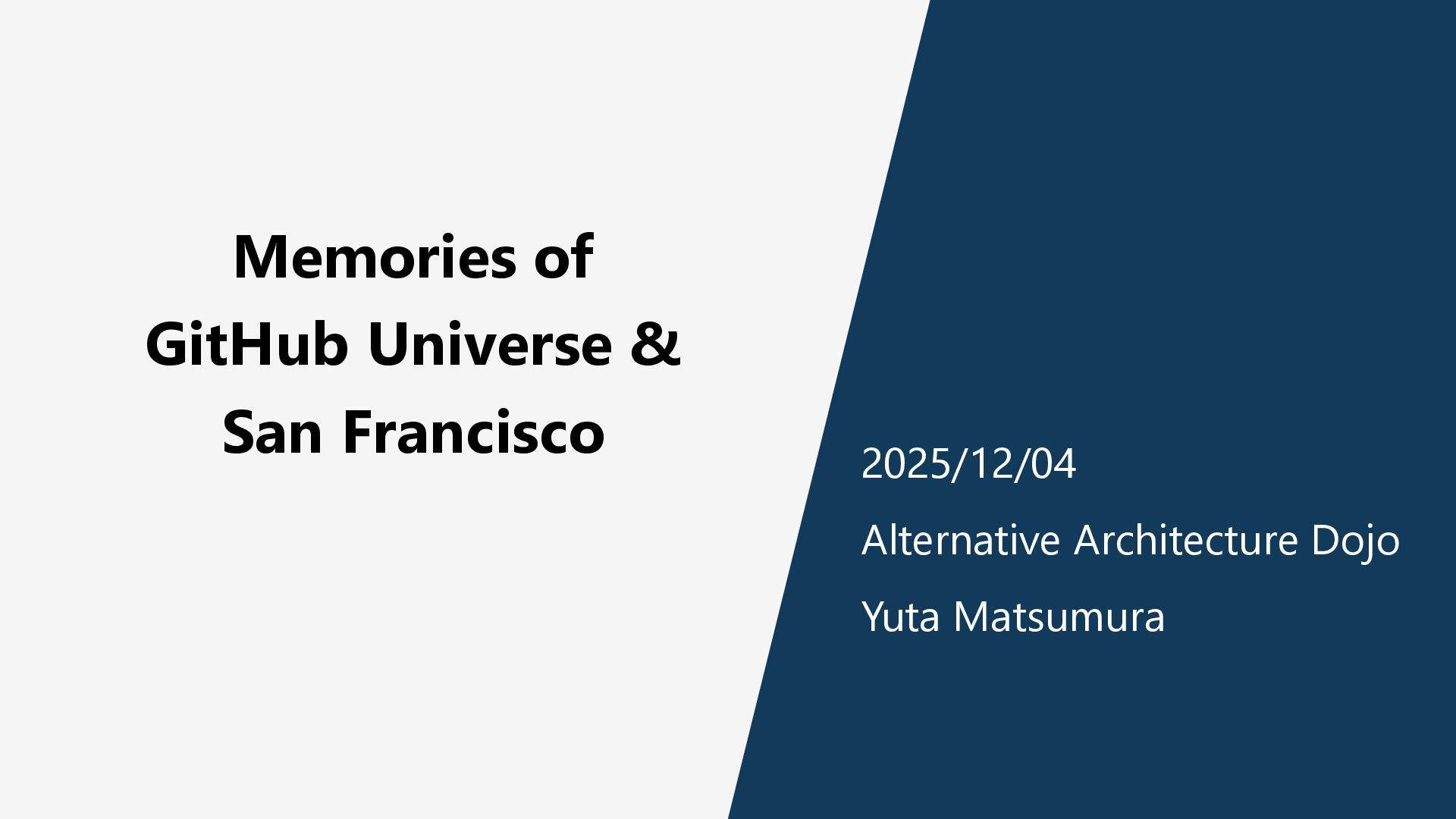 Memories of GitHub Universe & San Francisco 2025/12/04 Alternative Architecture