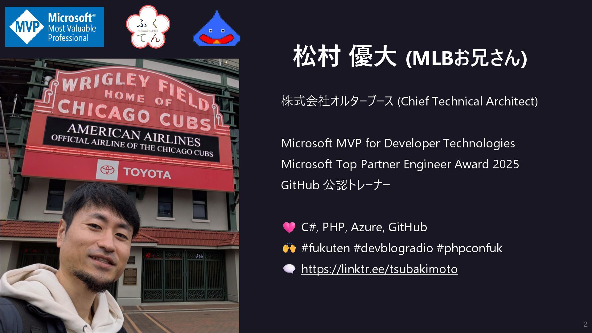 Technical Architect) Microsoft MVP for Developer Technologies Microsoft Top Partner Engineer Award 2025 GitHub 公認トレーナー C#, PHP, Azure, GitHub #fukuten #devblogradio #phpconfuk https://linktr.ee/tsubakimoto 2
