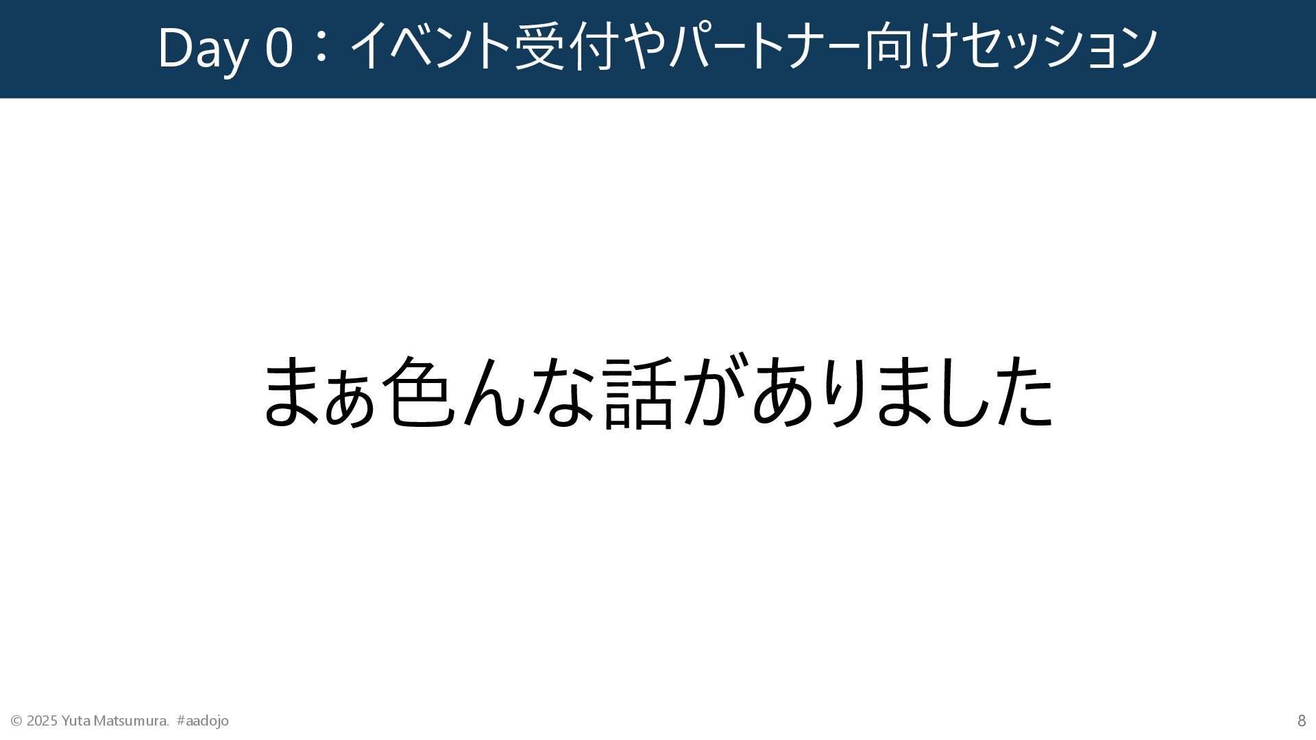 Day 0:イベント受付やパートナー向けセッション © 2025 Yuta Matsumura. #aadojo 7