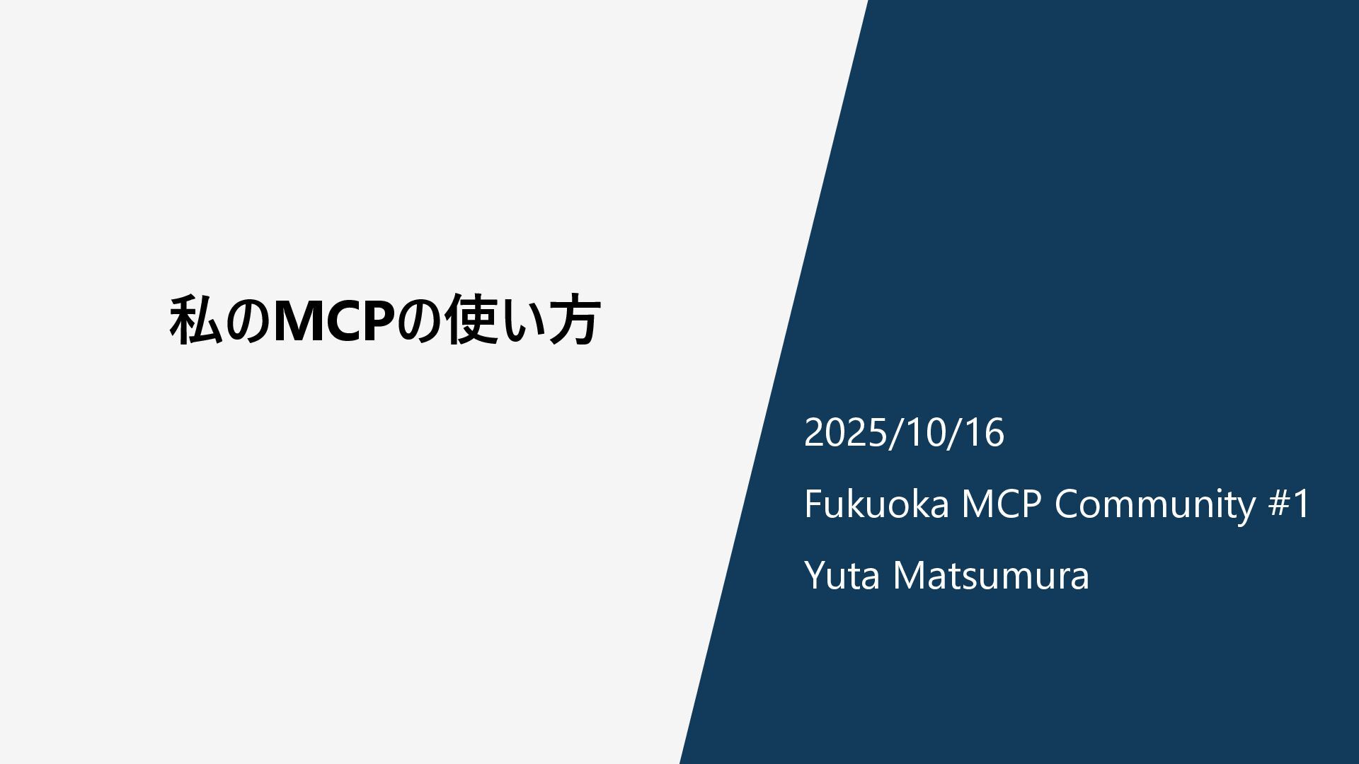 私のMCPの使い方 2025/10/16 Fukuoka MCP Community #1 Yuta Matsumura
