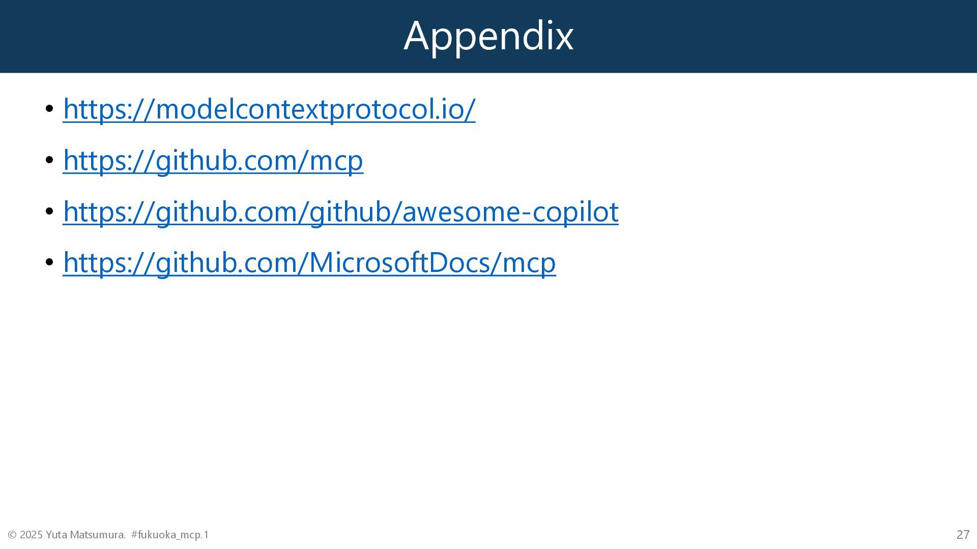 ご清聴ありがとうございました © 2025 Yuta Matsumura. #fukuoka_mcp.1 28
